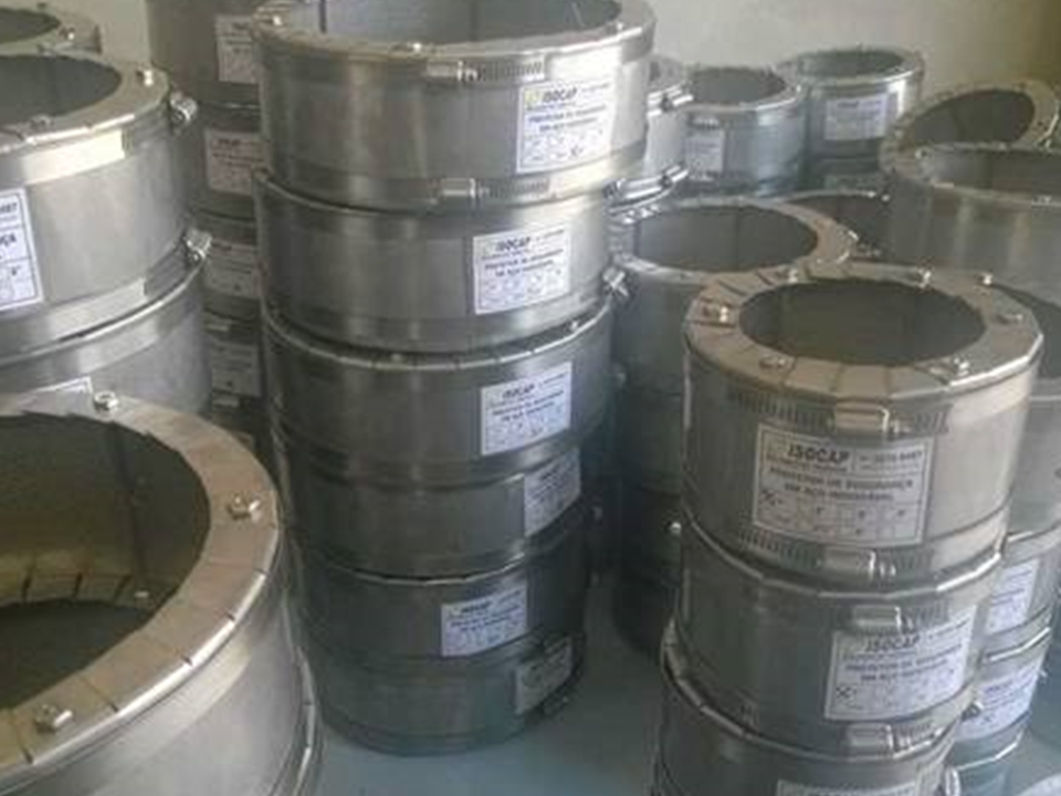 Protetores de flanges em aço inoxidável para linhas de óleo em geral, principalmente em turbogeradores.